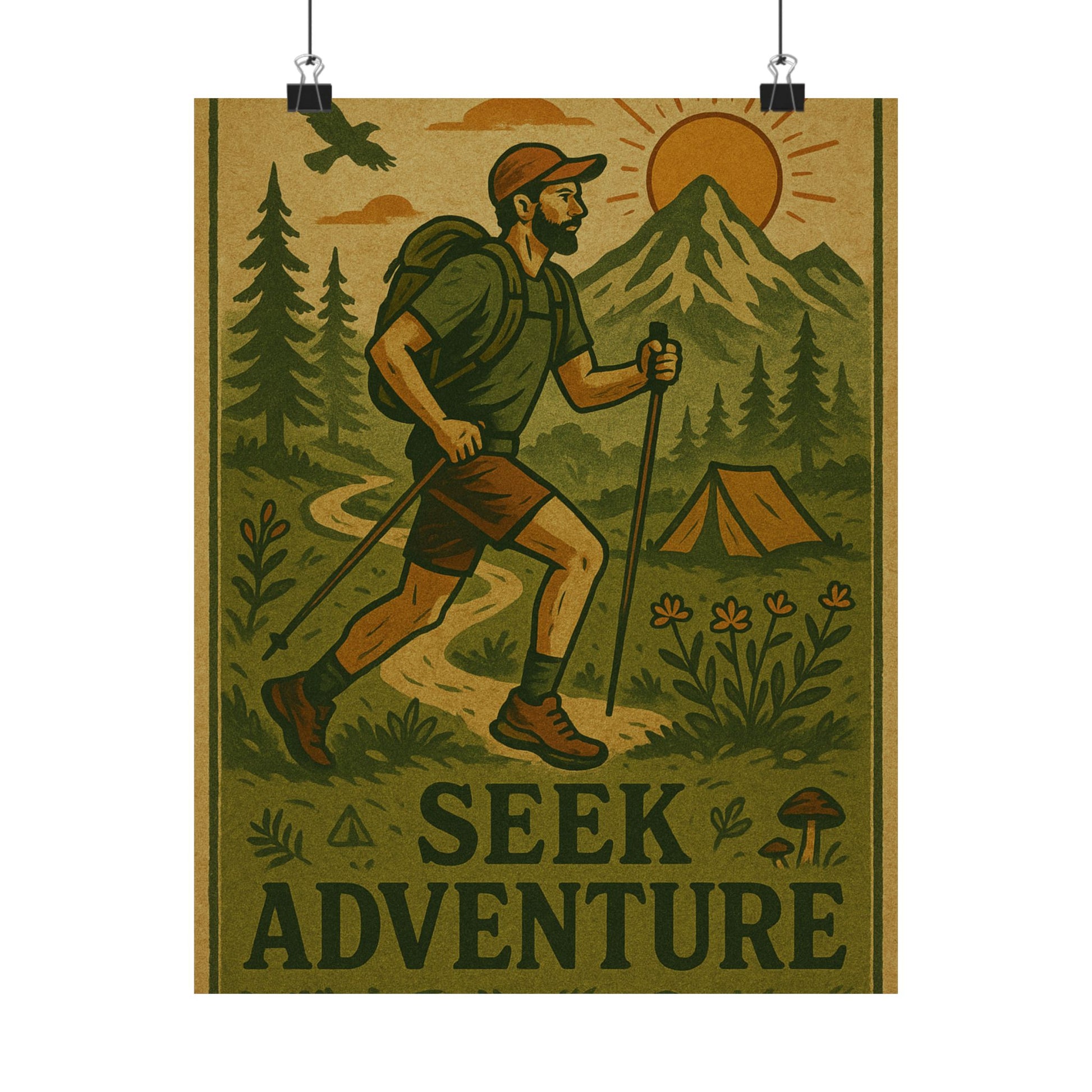 Seek Adventure Wall Poster Great for men who are explorers and want a reminder of upcoming adventures. This poster will inspire and motivate men to move. This poster is ideal for decorating a home office, man cave, or bedroom. Great gift for Father's Day, birthdays, or any occasion celebrating men and their adventurous spirit.